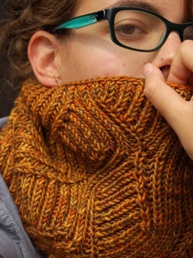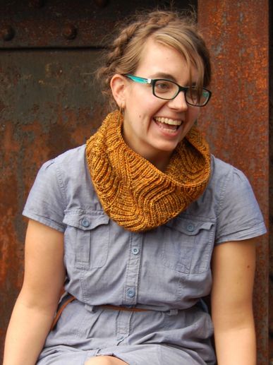 This mystery cowl is knit in the round from the bottom up and features a completely seamless construction using ribs and slipped stitches and is shaped with (easy!) German short rows.