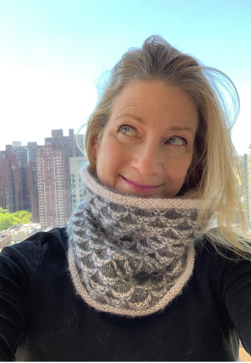 Based on her popular Butterfly/Papillon shawl, the cowl is an introduction into Marin’s short row pattern style.