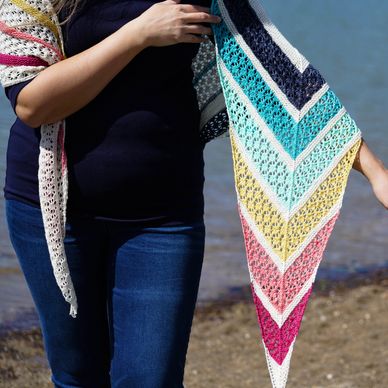 The Ice Cream Social shawl combines colorful minis, easy garter stitch, and breezy lace to create the perfect summer knit!